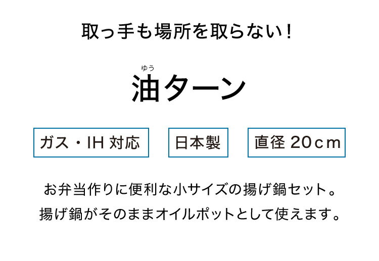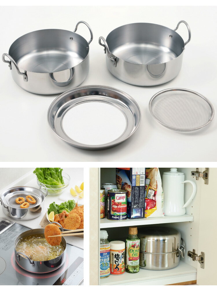 【商品詳細】4〜6人家族にちょうど良い20cmサイズの揚げ鍋セット。