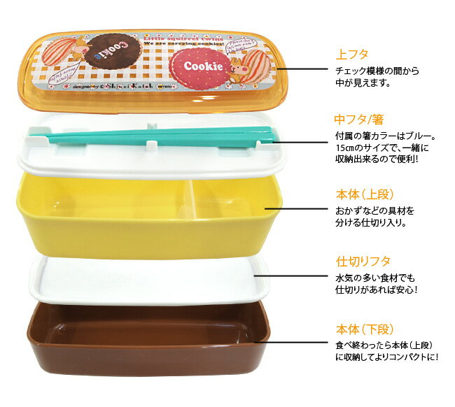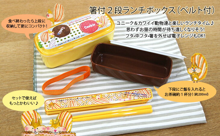 箸付2段ランチボックス(ベルト付)[Squirrel twins]シンジカトウ お弁当箱 cute lunch case w-box Shinzi Katoh design【宅配便のみ】